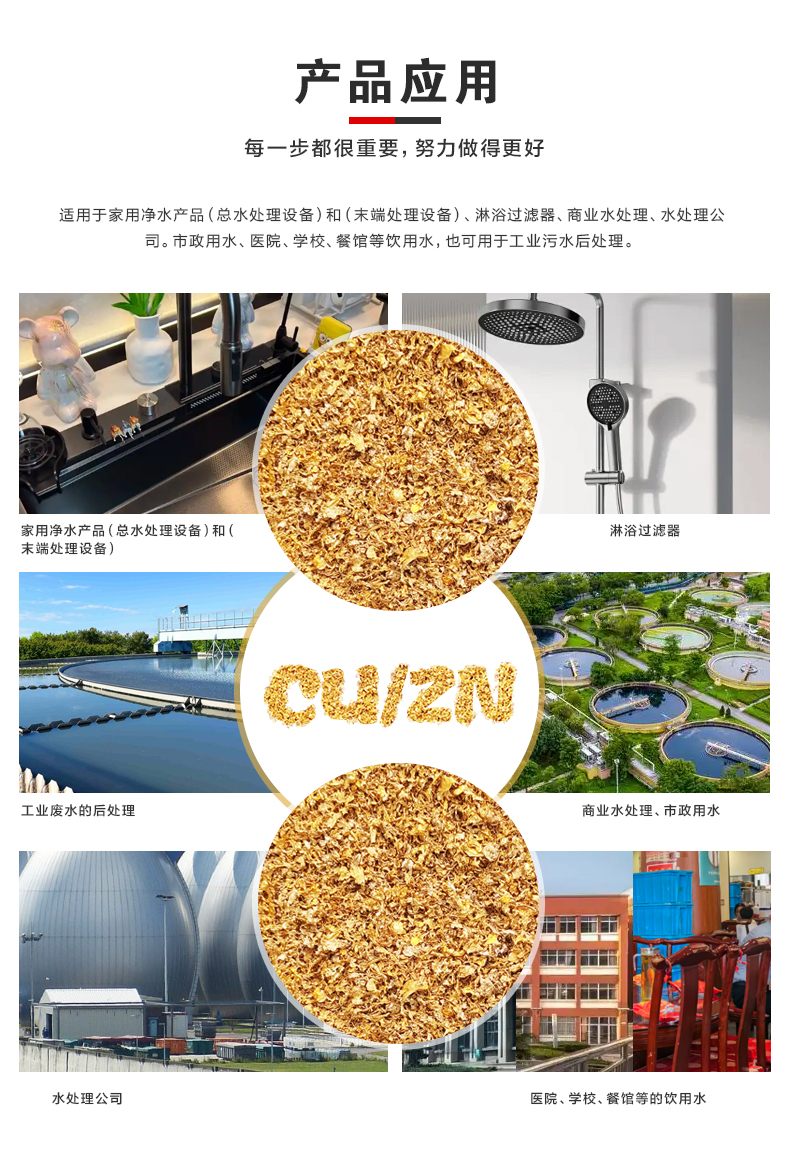 凱得菲CU/ZN 合金濾料可用于自來水進水點(POE)處理或(POU)末端凈化,廣泛用于家庭、商用、學校、企事業(yè)單位及建筑設施等,還可以用于工業(yè)污水的后置處理。